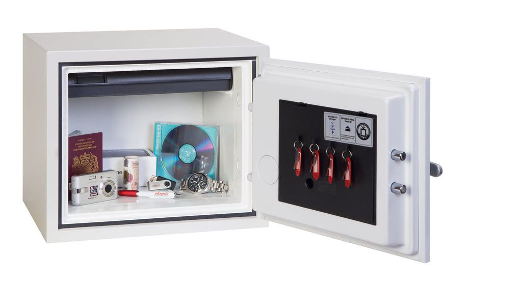 Le coffre-fort Phoenix Titan II FS1281E allie sécurité de haut niveau et design compact. Adapté aussi bien pour un usage résidentiel que commercial, il est équipé d’un tiroir coulissant et de crochets internes pour un rangement pratique et sécurisé de vos clés et autres objets précieux.